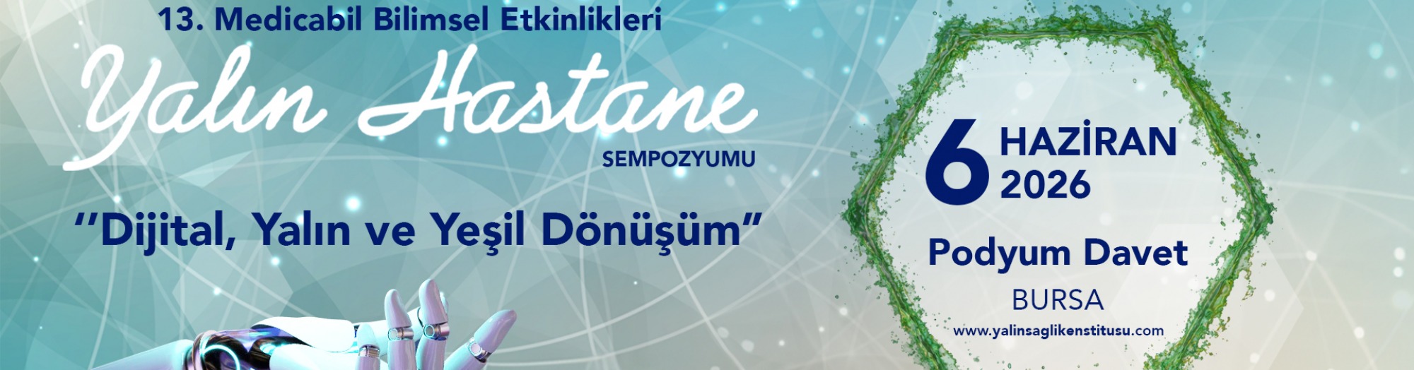 06 Haziran 2026 tarihinde Podyum Davet, Bursa’da gerçekleşecek olan 13. Medicabil Bilimsel Etkinlikleri Yalın Hastane Kongresi ‘Dijital, Yalın ve Yeşil Dönüşüm’ konulu etkinliğimize davetlisiniz!